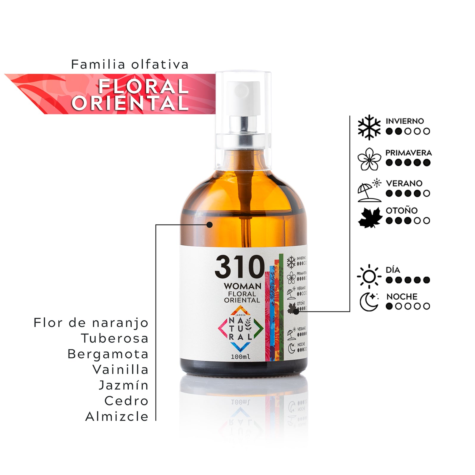 Flor de naranjo | Tuberosa | Bergamota | Vainilla | Jazmín | Cedro | Almizcle