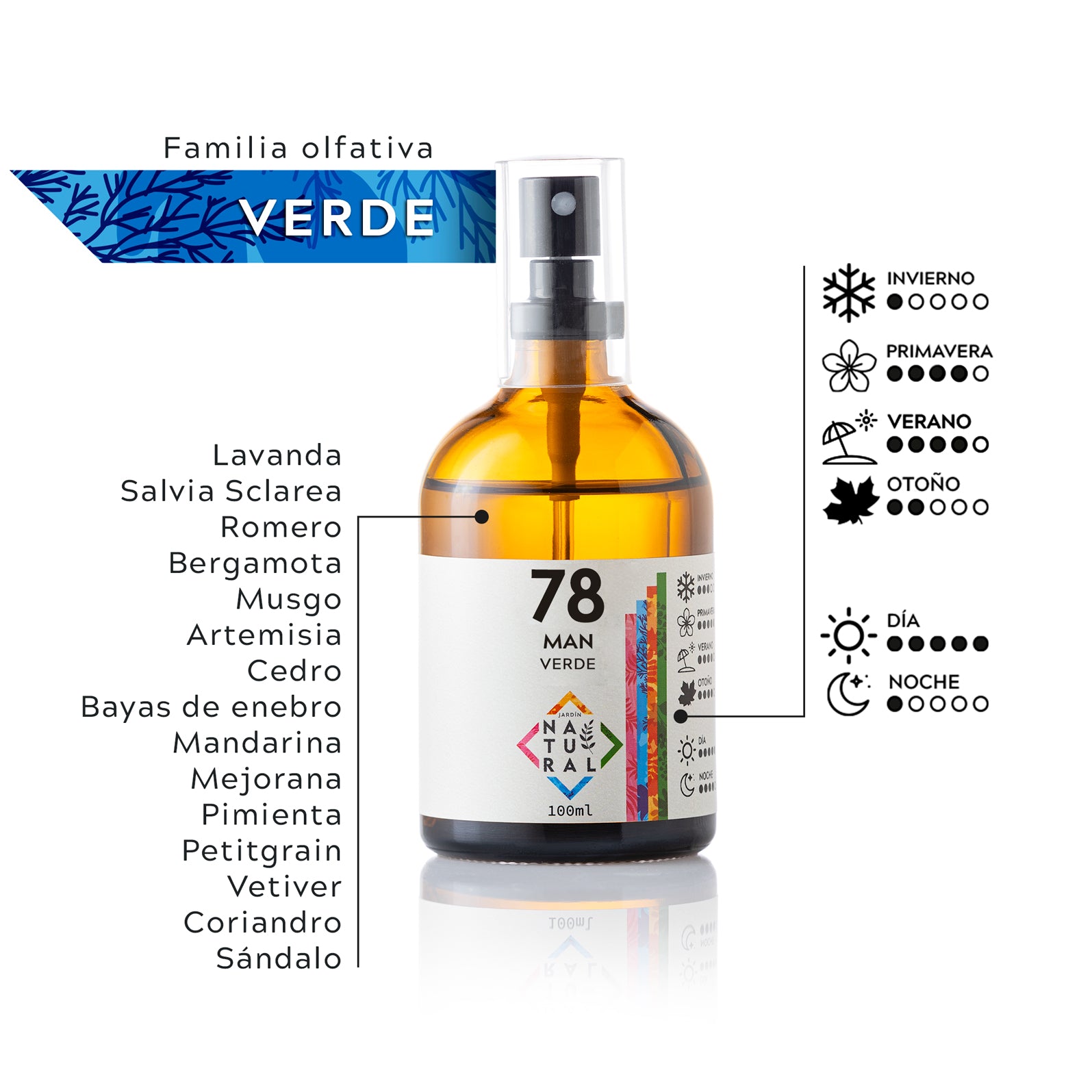 J | NATURAL MAN nº78 es como un paseo por un bosque lleno de vida después de una ligera lluvia. Esta fragancia masculina refleja frescura, naturalidad y elegancia discreta. Con notas cítricas como la mandarina y la bergamota, seguida por un corazón herbal de romero y lavanda, y un toque de profundidad con el vetiver y musgo al fondo, se siente como un tributo a la tierra y el aire limpio.