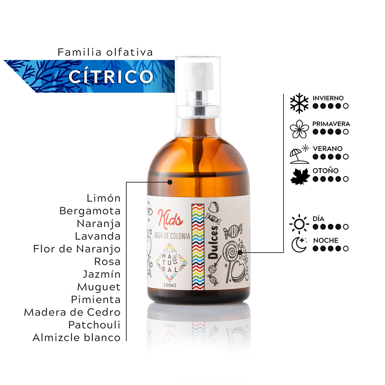 Una fragancia infantil, fresca y tierna, que transmite sensación de limpieza y bienestar tras el baño, lo que sugiere notas limpias, ligeramente florales o cítricas, diseñadas para transmitir pureza y suavidad.
